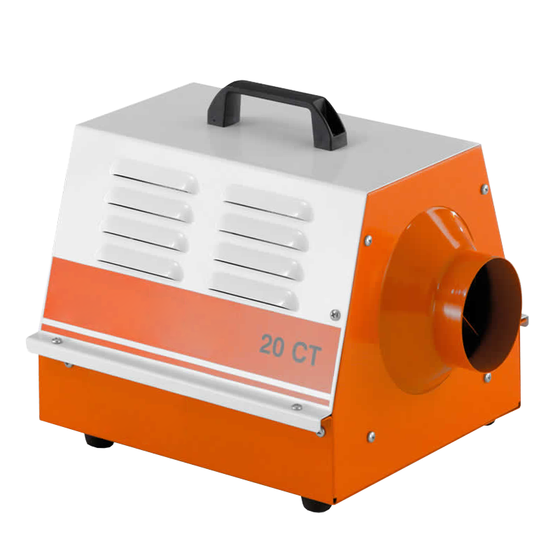Le 20 CT est un chauffage électrique très efficace en matière de consommation énergétique, et idéal pour réchauffer des volumes jusqu’à 67 mètres cubes. A l’esthétique moderne, cet appareil est livré avec un thermostat automatique intégré. Léger et compact, il est doté d’une poignée qui facilite sa manutention ; sa conception à double paroi garantit que les températures de son carénage restent basses en cours d’utilisation. En cas de besoin, le 20 CT peut être raccordé à une gaine d’air d’une longueur maximale de 3 mètres.